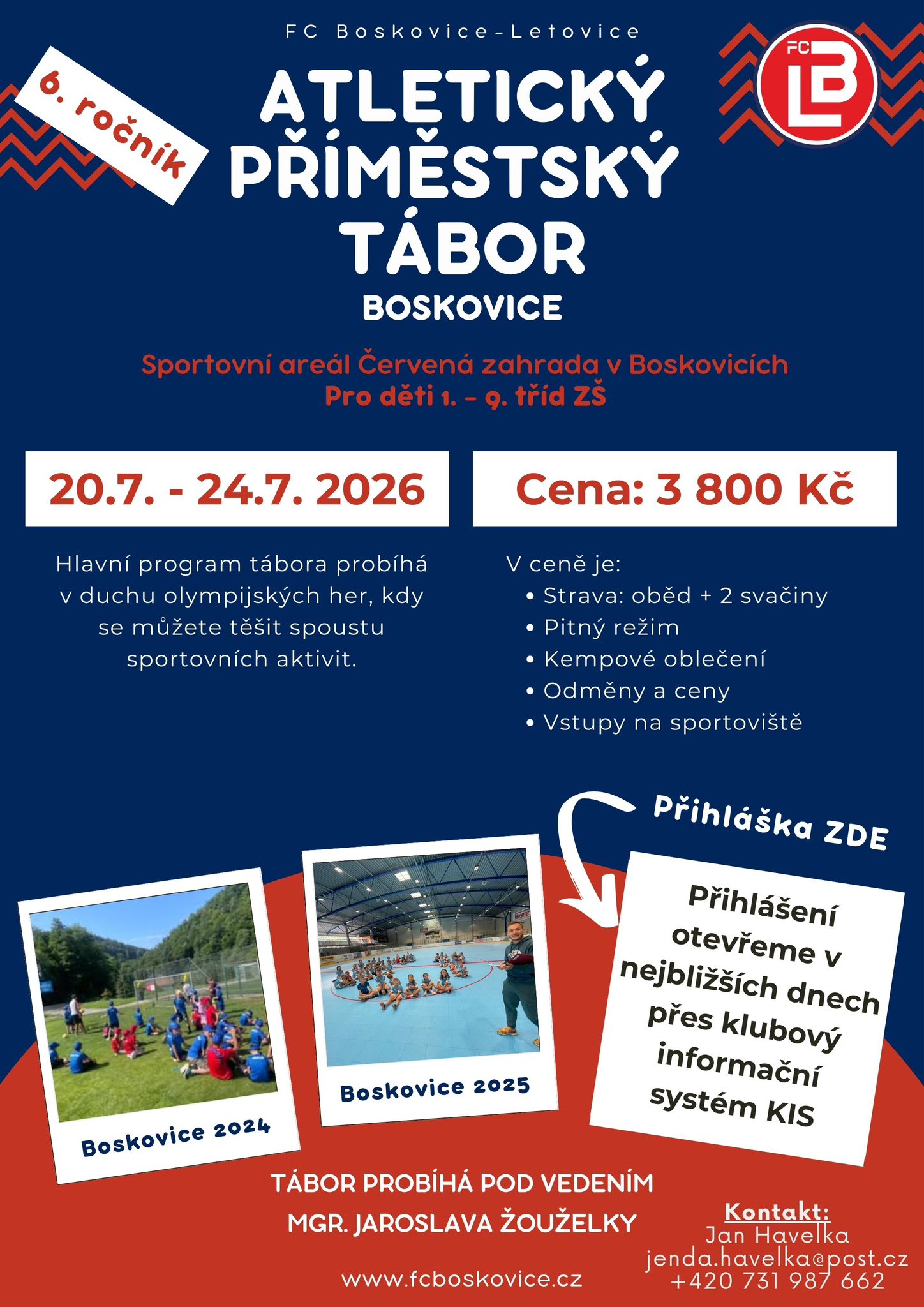 Sportovní příměstský tábor (Letovice): 13.7.–17.7. 2026 pod vedením Mgr. Vojtěcha Cichry Atletický příměstský tábor (Boskovice): 20.7.–24.7. 2026...