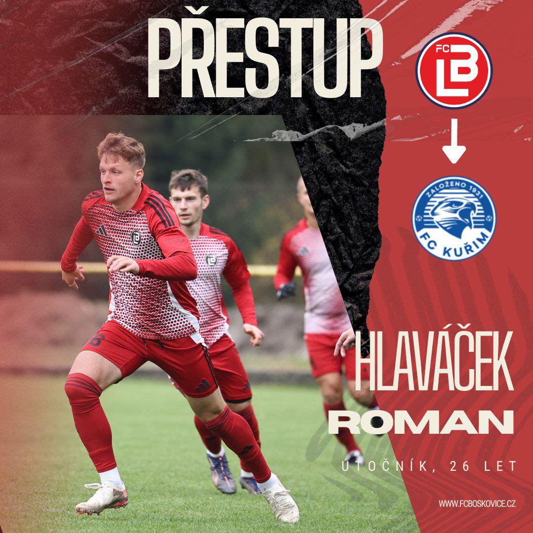 Včera byl oficiálně dotažen přestup Romana Hlaváčka. Odchovanec boskovické kopané odchází po vzájemné dohodě obou klubů na jarní část sezony do FC Kuřim, hrající 4. ligu – skupiny D. Romane, děkujeme ti za tvou práci! A přejeme, ať se daří v novém působišti!