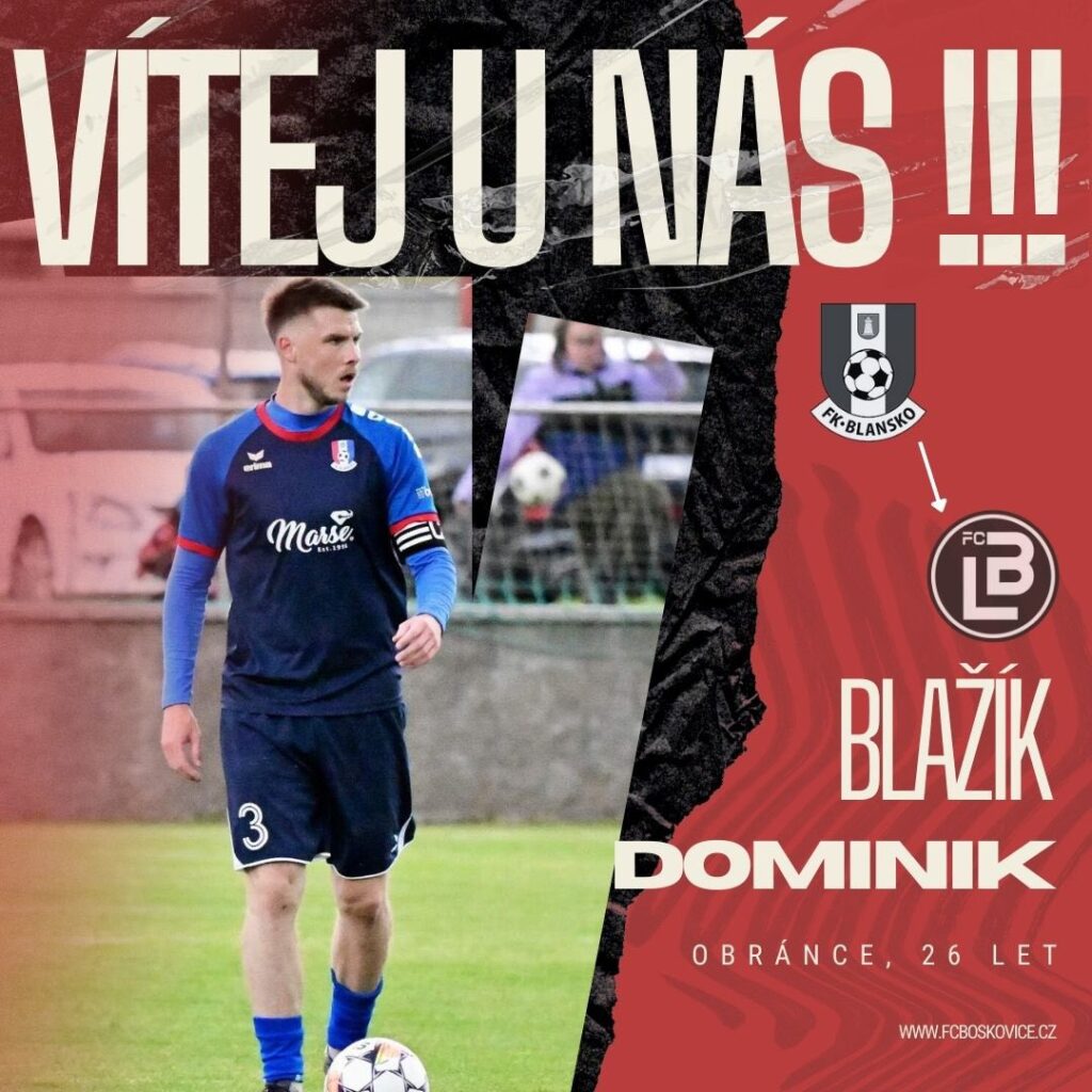 Druhou posilou je obránce Dominik Blažík. Šestadvacetiletý Dominik hrál poslední 4 sezony v Blansku. Předchozími kluby byly Rosice, Znojmo a v mládeži Zbrojovka Brno.![]()