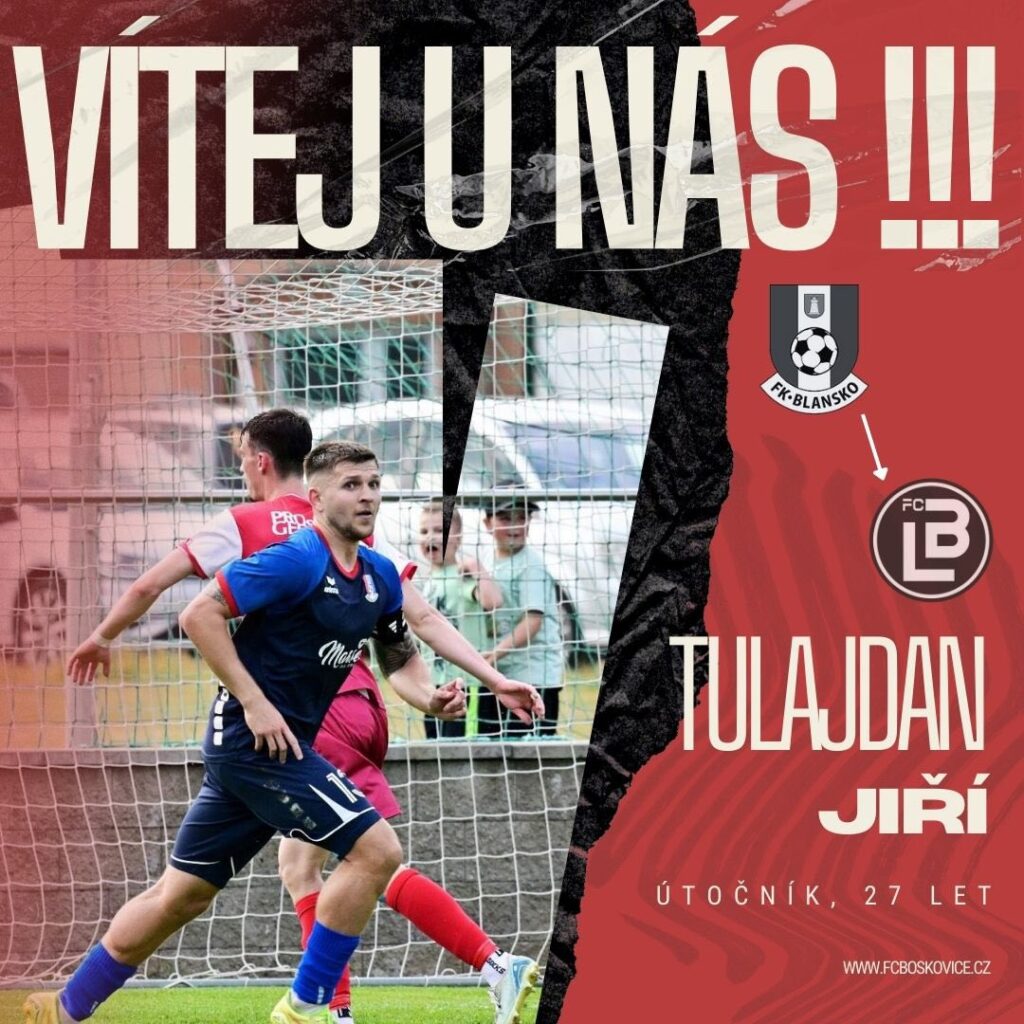 Další posilou je Jiří Tulajdan. Sedmadvacetiletý Jirka působil v Blansku 6 sezón, i s půlročním hostováním v Novém Městě na Moravě, ve kterých vstřelil 36 branek v MSFL a 17 branek v Divizi! Dále ve své kariéře oblékl dresy Hodonína, Bystrce a Zbrojovky Brno!![]()