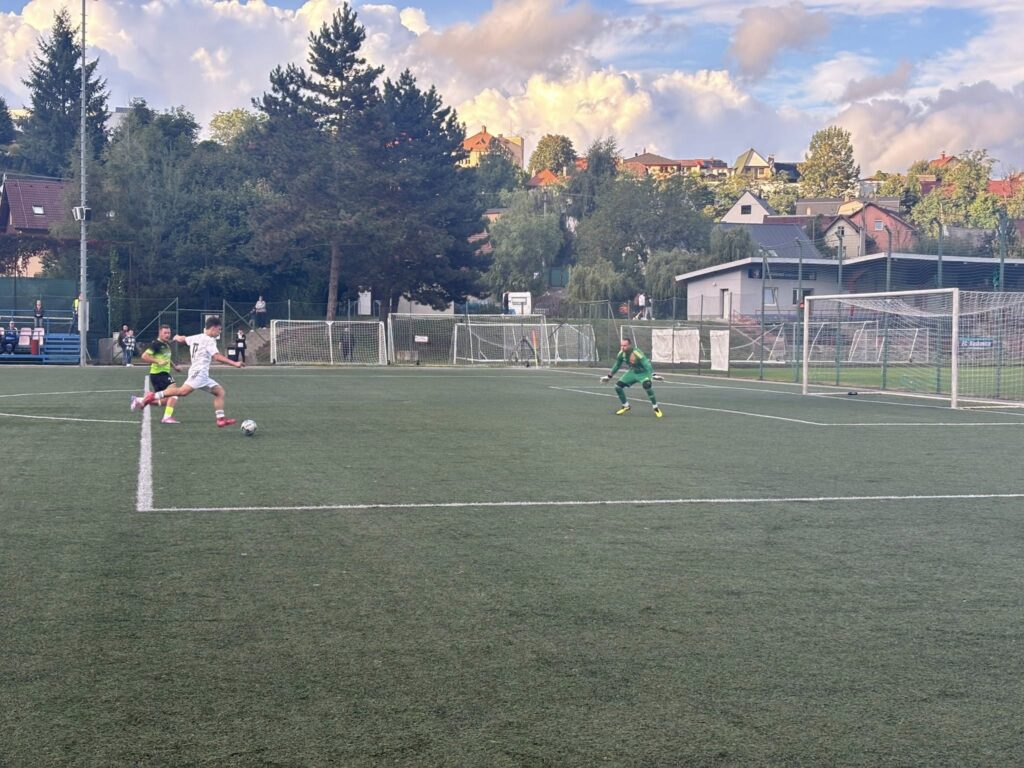 Dobrý vstup do utkání přinesl naše vedení hned ve 3. minutě. Po autovém vhazování se dostal k centru Michal Stříž a našel ve vápně Jendu Nováka – 0:1. Druhou branku vstřelil v 19. minutě Kuba Ondroušek, jenž napřáhl zpoza vápna ke střele po sklepnutí od Mildy Pokorného a uklidil míč po zemi k tyči – 0:2. Ve 33. minutě došlo k snížení, z rychlého protiútoku snížil na 1:2 Florián.