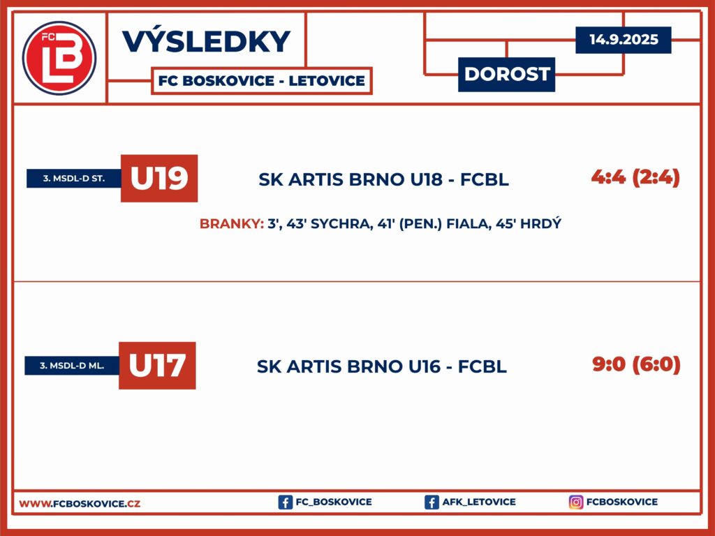 SK Artis Brno U18 – FC Boskovice-Letovice U19 4:4 (2:4)