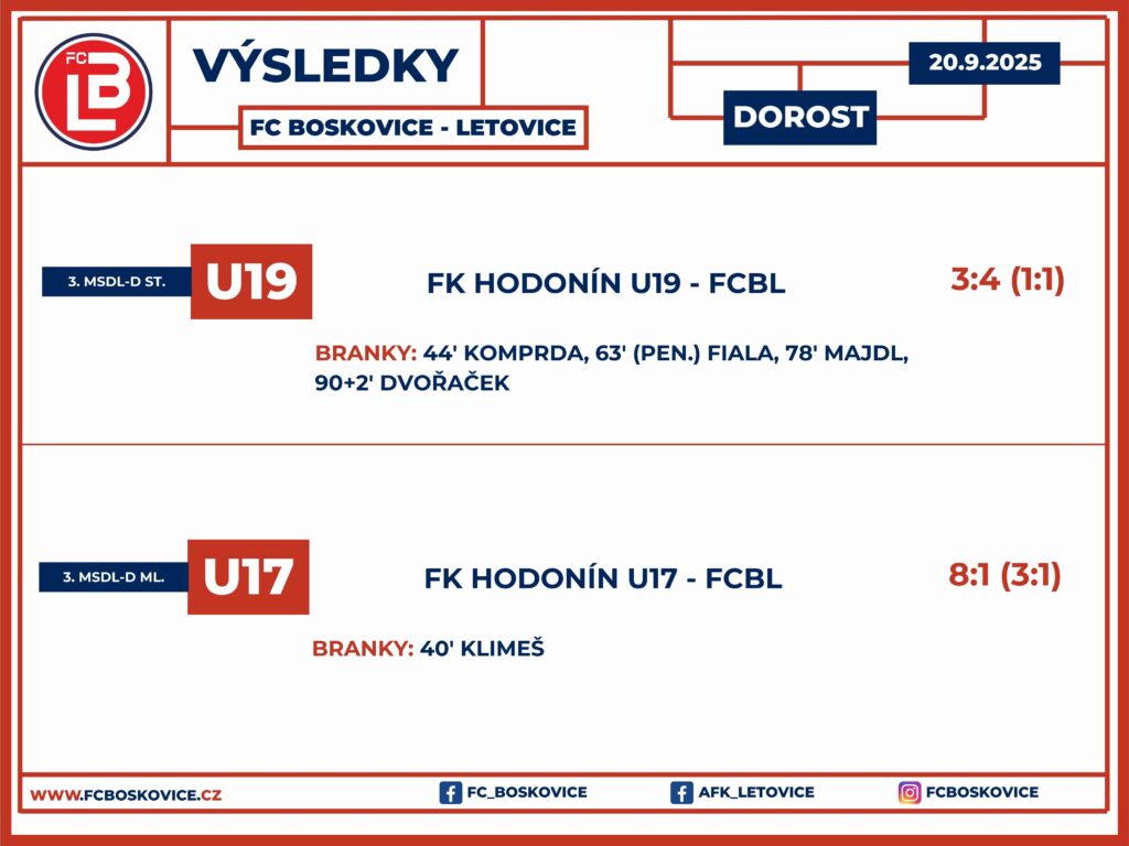FK Hodonín U17 – FC Boskovice-Letovice U17 8:1 (3:1)