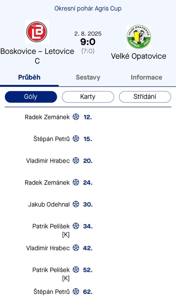 TJ Sokol Velké Opatovice 9:0 (7:0)